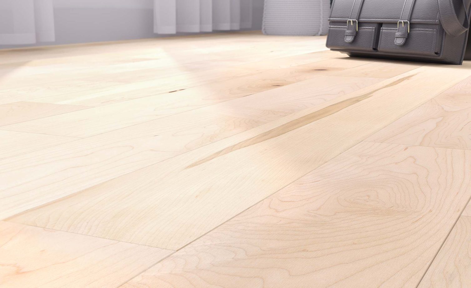 Surface faite d’une épaisse lamelle de bois franc de 4 mm pouvant être sablée et revernie.